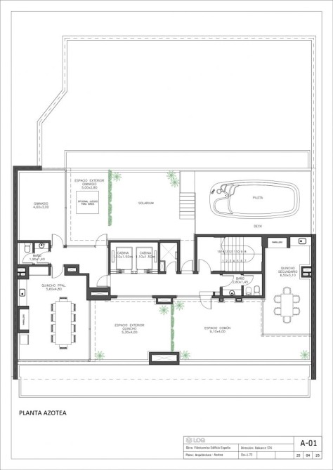 En el último piso del edificio se encuentra el sector de solárium con piscina, SUM, quincho cubierto y sector de asador.