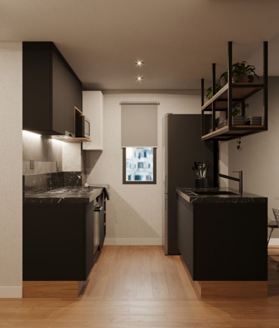Incluye hall ingreso, baño completo, dormitorio con placar. Cocina integrada al estar comedor, barra desayunador. Espacio guardado Living comedor. Baño completo.