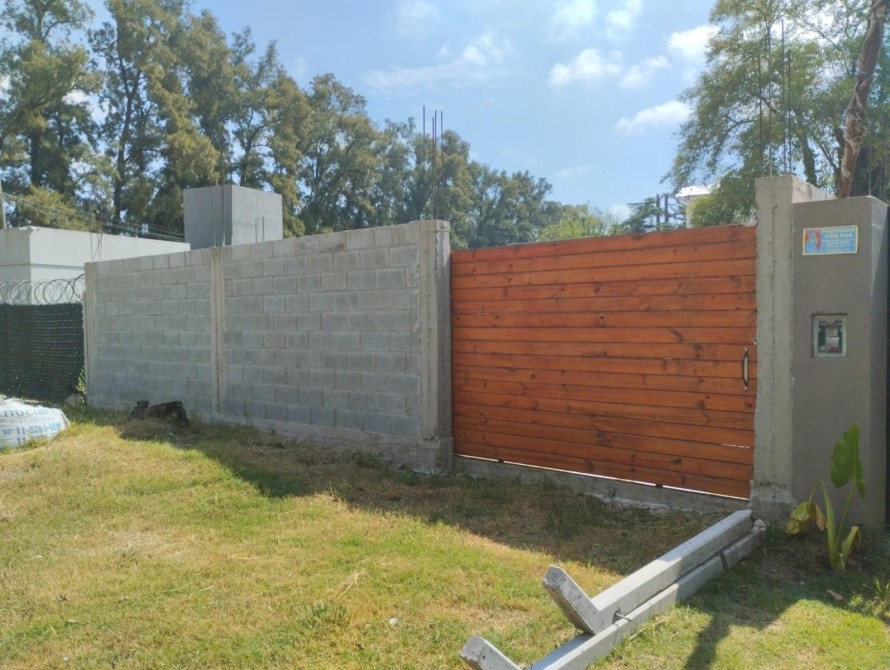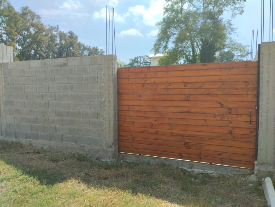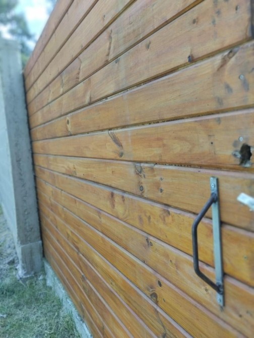 • Portón corredizo de madera con cerradura