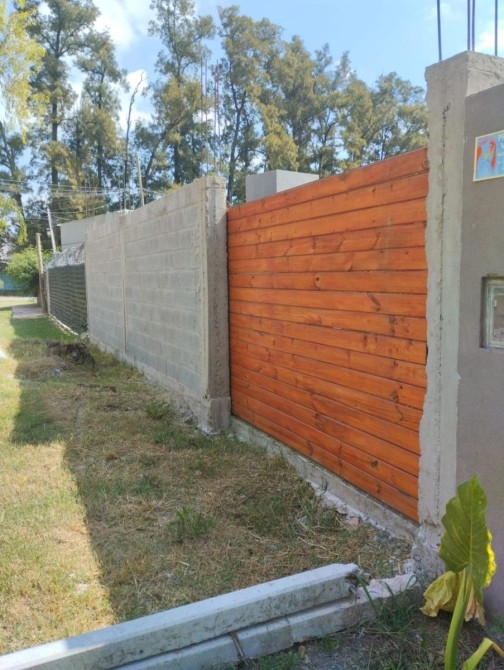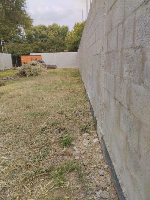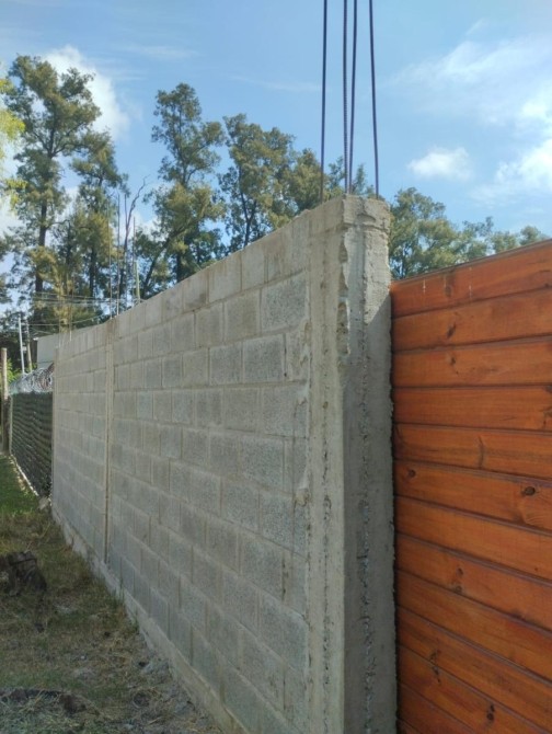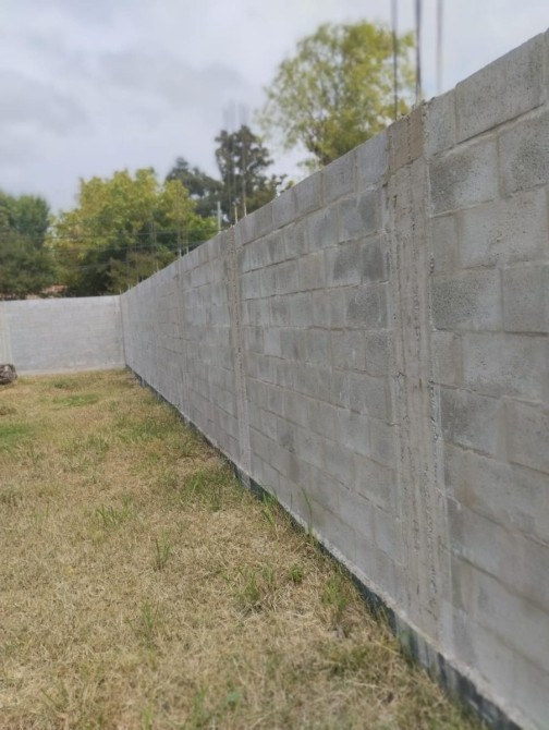 • Perímetro completo con pared de bloque hormigonado, con encadenado y 23 columnas con zapata de 1.3 mts + pilotines