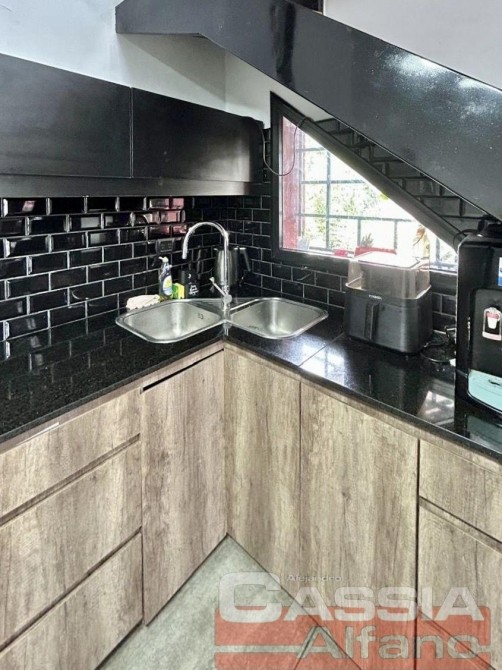 Construido sobre lote en PH de 8,66 mtrs de frente, por 17 metros de fondo aprox. Patio, Living al frente, Comedor con pisos porcelanato, Cocina totalmente equipada integrada al ambiente, revestida en cerámicos de primera y modernos, con amoblamientos de bajo y alto mesada tipo alacena en melamina texturada, puertas, estantes y cajoneras completas en impecable estado, amplia mesada con Bacha doble de acero inoxidable con griferías FV, Artefacto de cocina semi industrial de primera calidad de 4 hornallas y horno acero inoxidable, campana acero inoxidable con luz. Equipos de Aire Acondicionado tipo split portero intercomunicador visor, Hogar tipo tromenn con tiraje natural modificado a gas tipo simil leños, Un Baño Completo íntegramente ceramicado con guarda decorativa con Ducha y mampara separada, vanitory con griferías cierre cerámico, DORMITORIO principal EN PLANTA BAJA con ventana al frente pisos porcelanato. Techos doble alto en todo el comedor de diario y cocina, lo que brinda una dimensión de volumen extraordinario, acceso al primer piso por escaleras (actualmente gimnasio) QUE TIENE LA POSIBILIDAD DE DIVIDIRSE EN DOS AMPLIOS DORMITORIOS MAS! ya que actualmente sus dimensiones son de 8,30 x 3,50 metros. todo en LOSA REFORZADA que balconea al Comedor/estar.