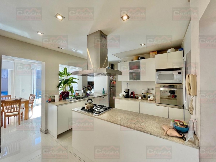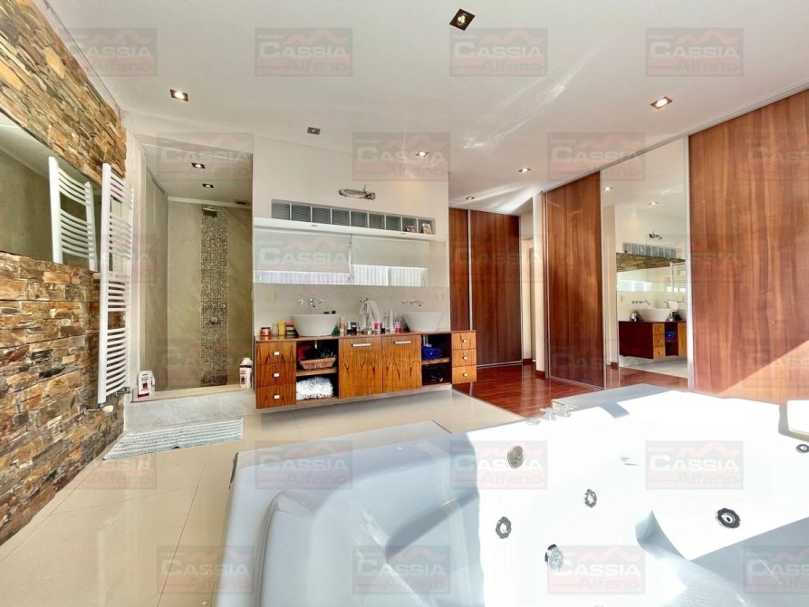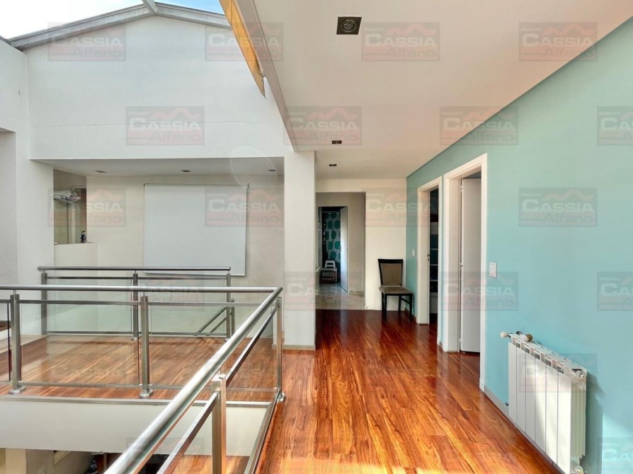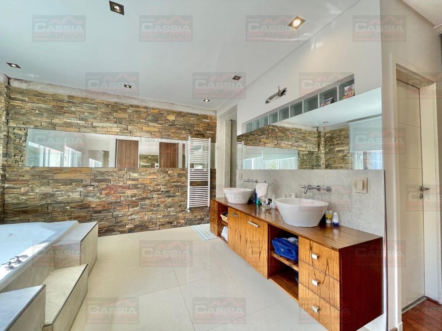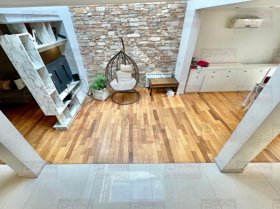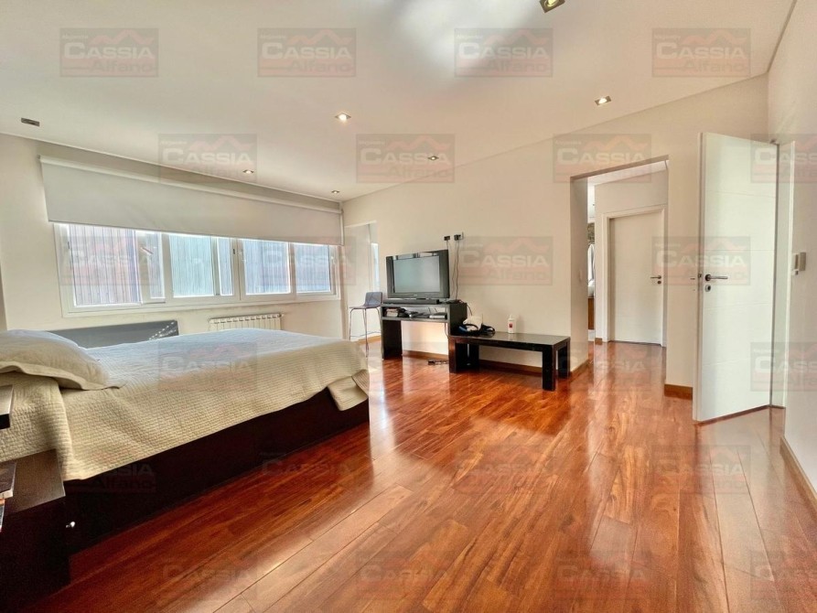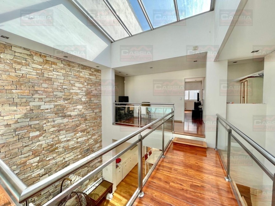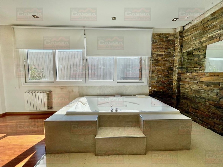 PLANTA BAJA: rejas de seguridad, jardín al frente, garage para 2 vehículos amplios con portón automatizado y espacio de guardado dedicado, Living ial frente integrado a un amplio comedor, CUPULA SOLAR con cuadruple vidrio laminado que proporciona un ambiente central SUPER LUMINOSO, toldo automatizado, cocina totalmente equipada con muebles bajo mesada y alto con alacena, isla central, campana extractora, pisos porcelanato, y madera entablonada de primera calidad. MUY LUMINOSO! Un baño totalmente equipado, Patio central, hall distribuidor, amplio fondo libre parquizado, PISCINA CLIMATIZADA (caldera a gas natural nueva) espejo de agua de 8 x 3,50, revestimiento interno AQUAVATIONS, con Venecitas perimetrales, baldoza atermica, sistema de cobertor automatizado que permite el transito, anti caida, bomba y filtrado automatico. Sistema de Agua Caliente por calderas DUAL ultima generación (UNA PARA PLANTA BAJA Y OTRA PARA LA PLANTA ALTA). Radiadores calefactores en todos los ambientes, SALA de ESTAR tipo QUINCHO integrado en un ambiente único con orientación NORTE con PARRILLA acero inoxidable doble uso CARBÓN/GAS, bacha de lavado, muy buen ingreso de luz, integramente vidriado con cerramientos DVH (doble vidriado hermético) en PVC de primera calidad. Ducha exterior. DETALLES DE CATEGORÍA-
