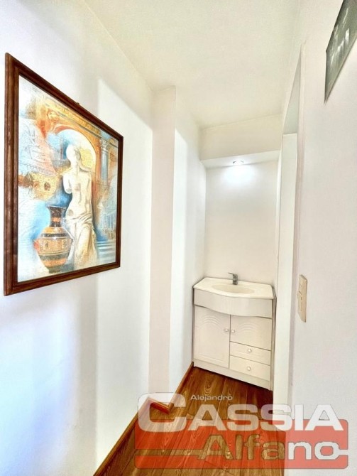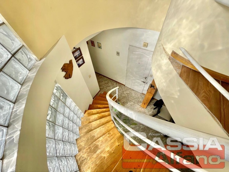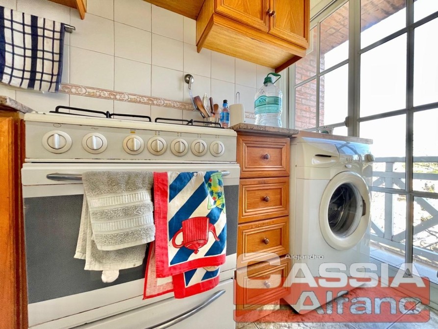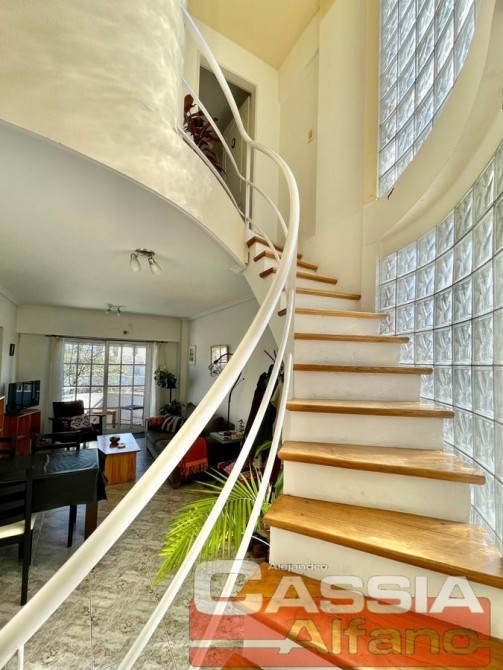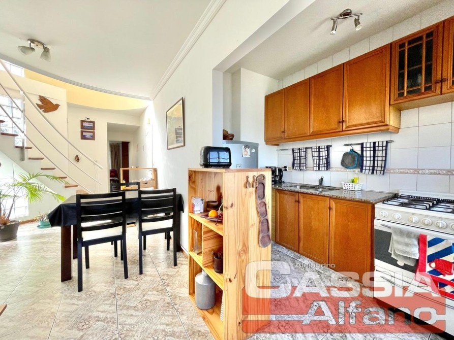 SUPER Amplio Depto. en CUARTO piso c/ascensor, "CON Cochera" incluída en valor VENTA Acceso a Hall central, PUERTA con cerradura de seguridad, P.Baja: Amplio Living-Comedor pisos CERÁMICOS, COCINA semi integrada con pasaplatos desayunador en madera Cedro, Alacenas y vitrina en bajo-mesada, estantes y repisas, Amoblamientos Bajo mesada completos, alacenas en alto, pequeño organizador, mesada en granito con bacha lavaplatos, griferías en monocomando, con artefacto de cocina 4 hornallas y horno a gas natural instalado y CALDERA a gas natural CON RADIADORES, espacio para microondas. Campana extractora/purificador de aire acero inox. Caja elèctrica con llaves térmicas y disyuntor diferenciado reglamentario. Todo revestido en cerámicos. LIVING-COMEDOR con amplio ventanal al frente y al balcón TERRAZA, UN dormitorio con placard y balcón al contrafrente, UN Baño totalmente instalado, Escaleras DE MADERA super luminoso! que comunica con la P.Alta: Hall distribuidor con placard amplio y, pisos vinílico simil madera, DORMITORIO Ppal. al frente, piso vinílico, amplio ventanal muy luminoso, Posee otro placard empotrado. BAÑO Compartimentado completo, Vanitory completo mesada marmol, bacha y griferías completas, espejos- COCHERA descubierta en PLANTA BAJA (FIJA)