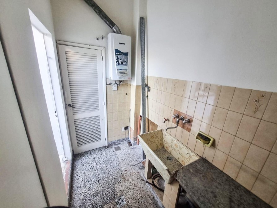+ A la izquierda se encuentra cómoda cocina con mucho espacio para guardado, gran ventana con vista al patio, lavadero independiente y toilette. Ademas cuenta con una amplia puerta de doble abertura vidriada, lo que le da privacidad a la hora de cocinar.