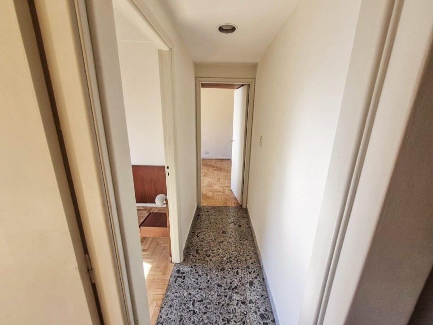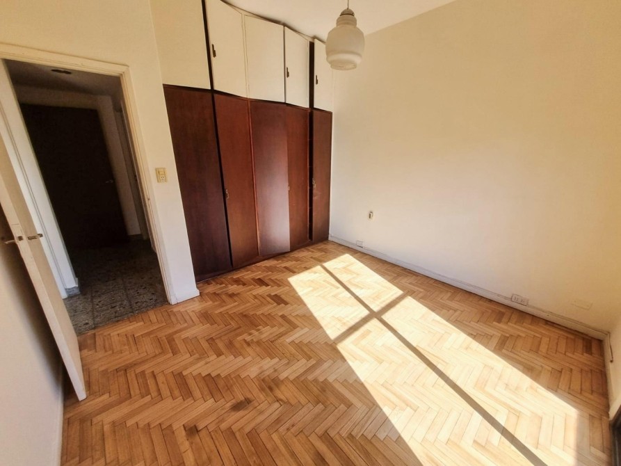 + A la derecha del hall, nos encontramos con pasillo que distribuye al baño completo y al dormitorio principal con gran placar empotrado y lugar de guardado, aire acondicionado frio/calor, piso de parquet inmaculado y vista al frente muy luminoso con balcón corrido.