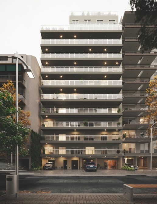 El edificio se distingue por sus terminaciones premium, destacándose las aberturas de alta prestación en aluminio anodizado con doble vidrio hermético (DVH) y equipos de aire acondicionado en cada ambiente, garantizando una excelente eficiencia energética y confort.