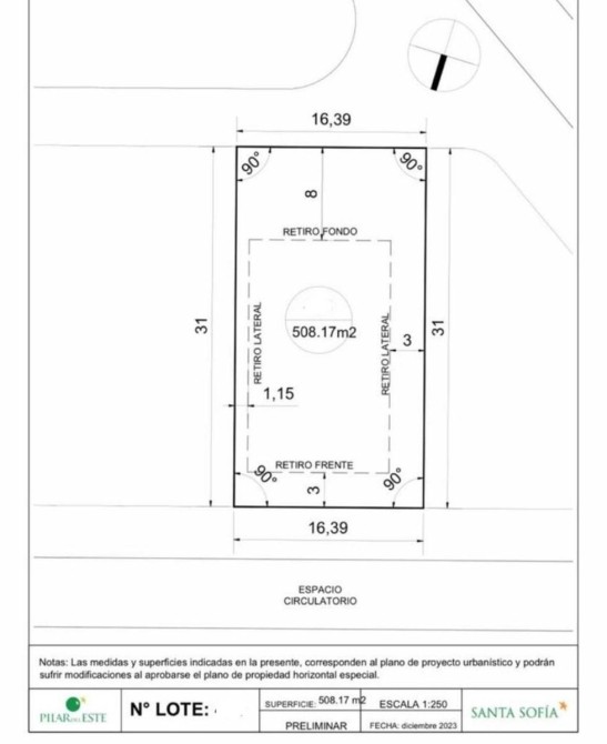 muy bien ubicado, de 508m2 lote central interno en el nuevo barrio Santa Sofía , frente a Sta. Elena, dentro del desarrollo inmobiliario pilar del este.