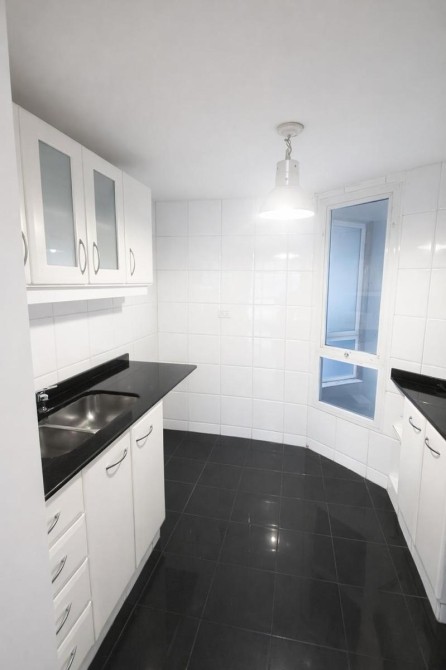 La cocina es completa, con buen espacio de guardado y funcionalidad.
