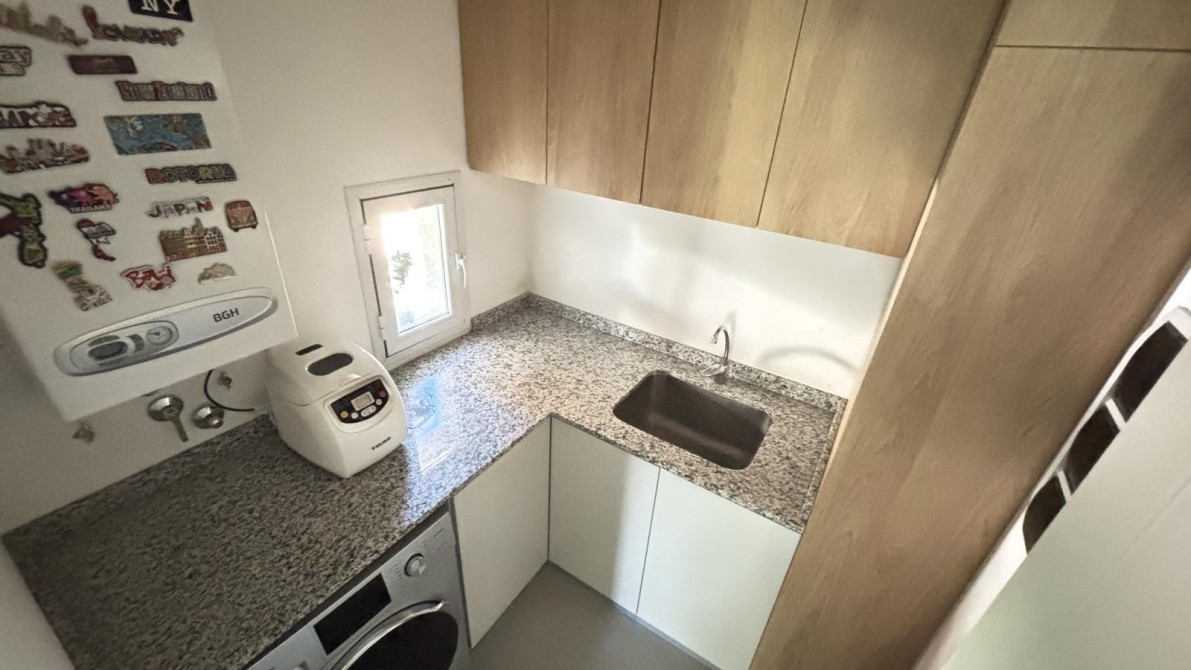 Lavadero independiente con muebles de guardado.