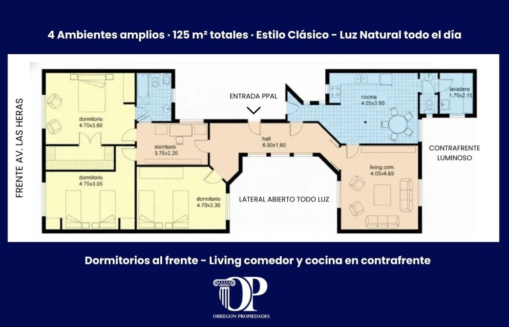 La propiedad se encuentra en un 5° piso, con orientación Norte, lo que garantiza excelente luz natural durante todo el día.