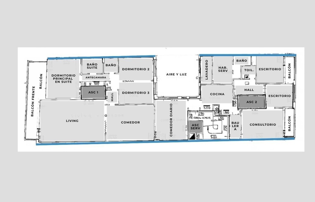 La planta permite múltiples opciones de redistribución y modernización, conservando la amplitud y elegancia típica de los pisos clásicos de la zona.