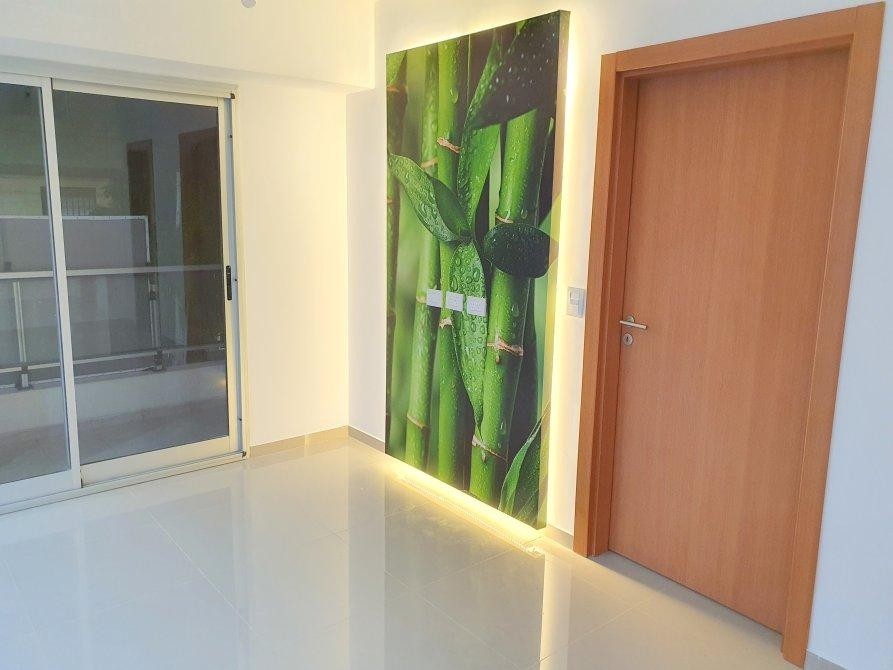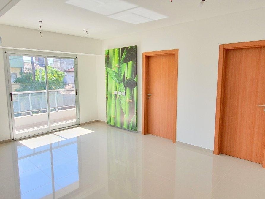 Los pisos son de porcelanato pulido importado y el departamento cuenta con preinstalación para climatización en living comedor y dormitorio. El edificio ofrece acceso a una amplia terraza de uso común con parrilla, pileta, baño y cuarto de servicios, además de puerta de seguridad en la entrada principal.