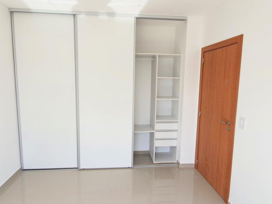 El dormitorio es de dimensiones generosas y dispone de placard completo. El baño se encuentra equipado con grifería FV con cierre cerámico, sanitarios marca Roca e iluminación LED, manteniendo la misma calidad de terminaciones en toda la unidad.