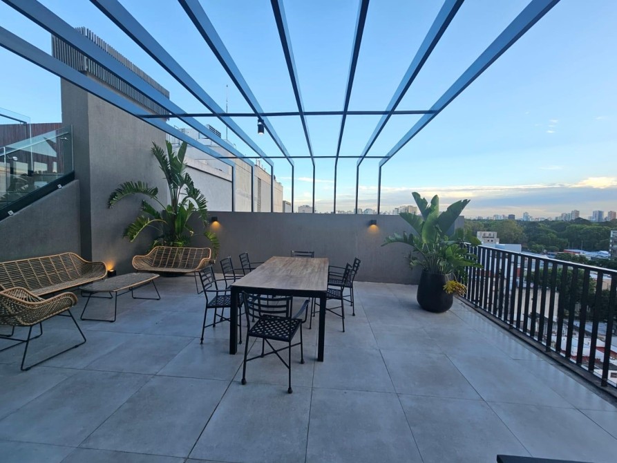 La terraza es un oasis: piscina infinita con vistas al Río y al puerto de Olivos, ¡ideal para relajarse! Además, 2 espacios de parrilla, SUM, gimnasio y laundry.
