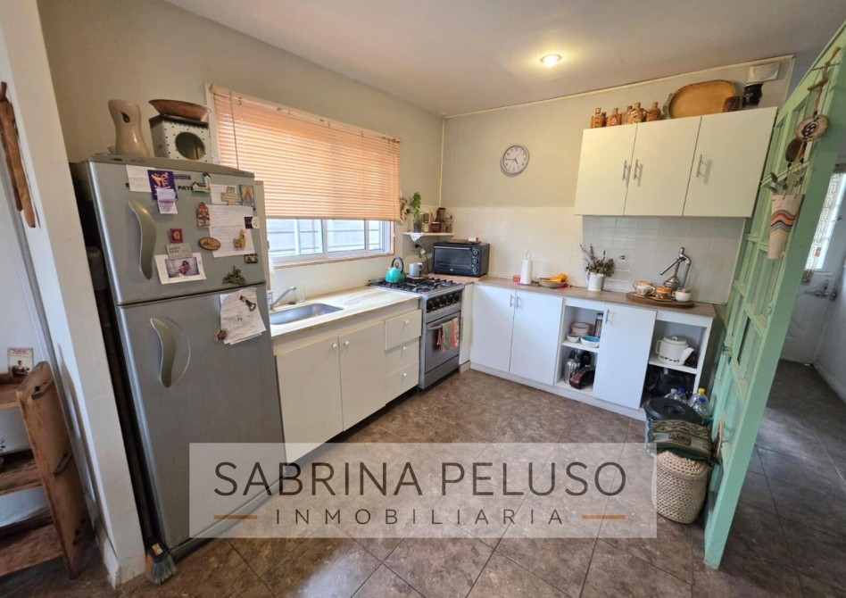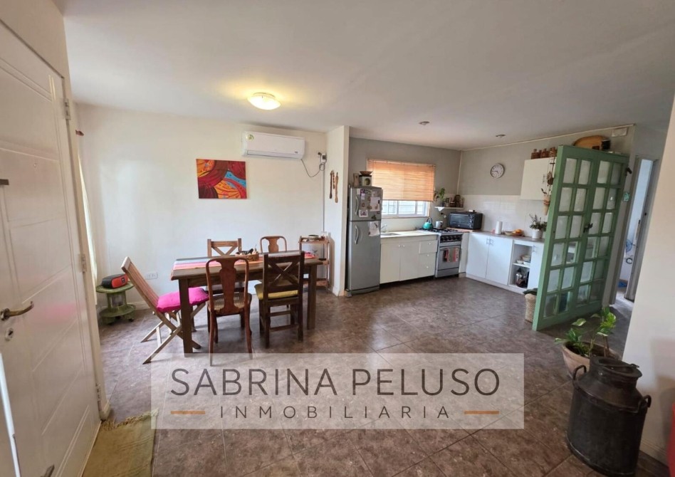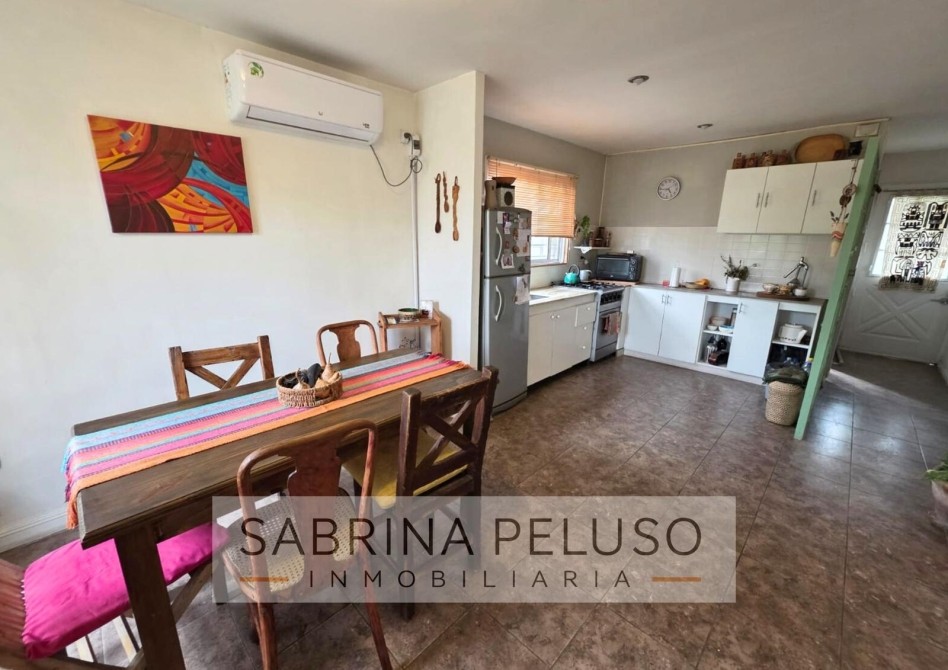 * Living (con estufa Tromex), cocina y comedor integrados