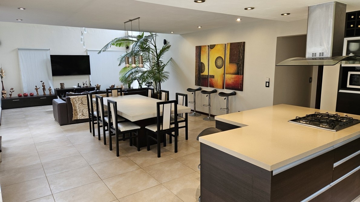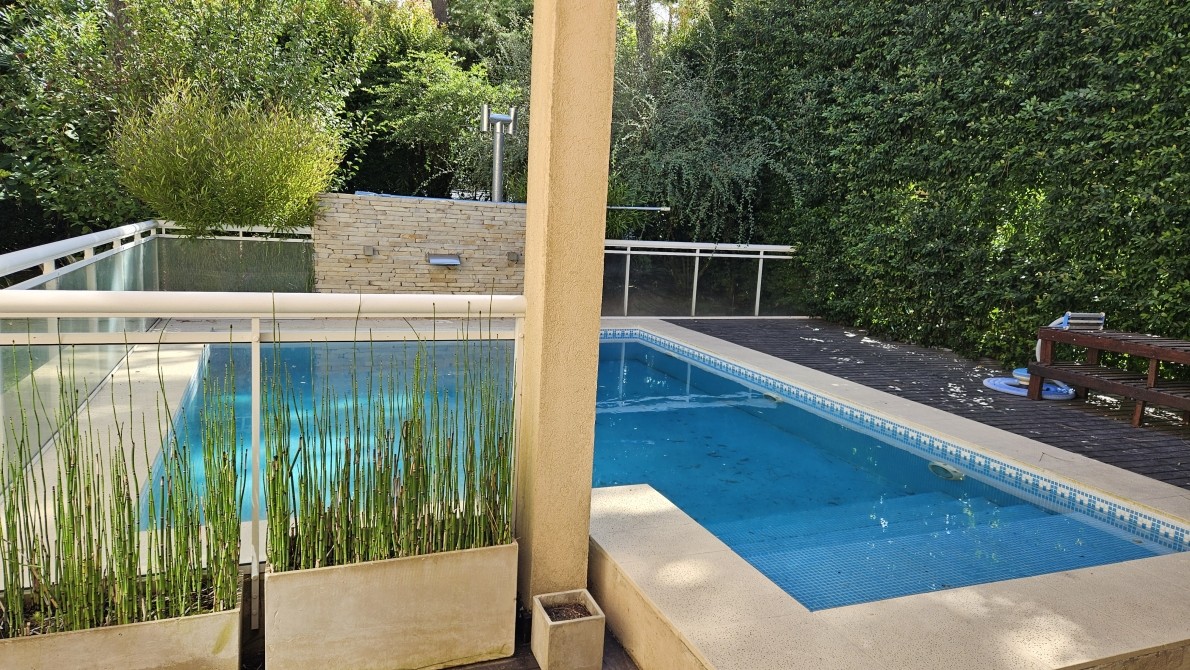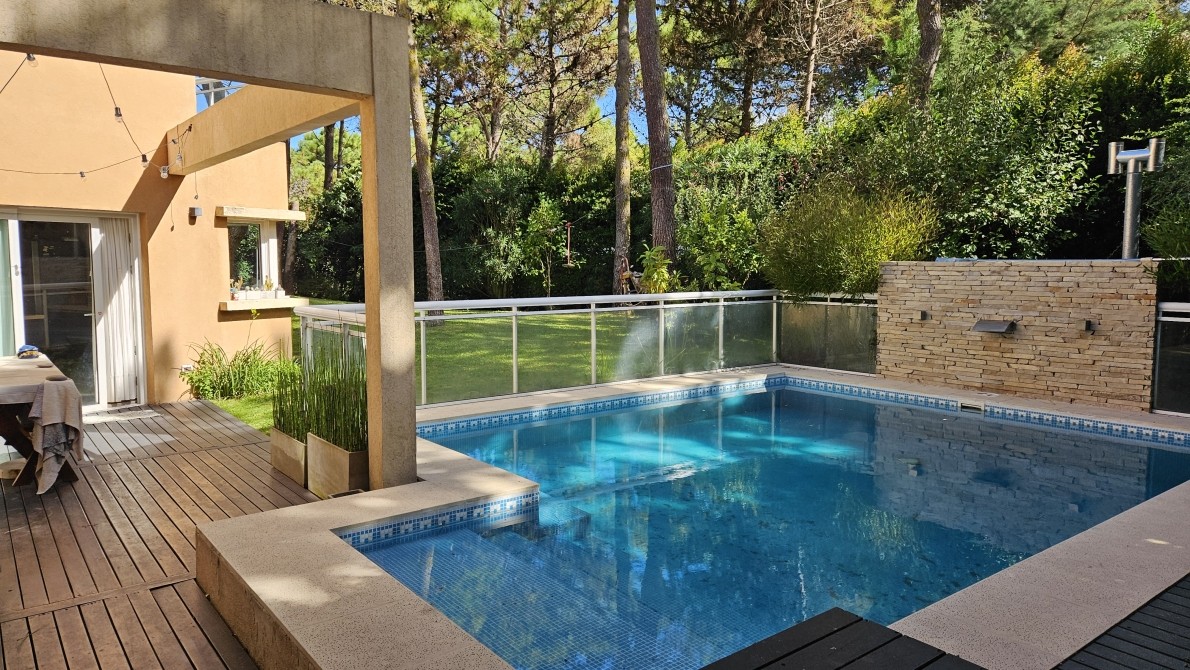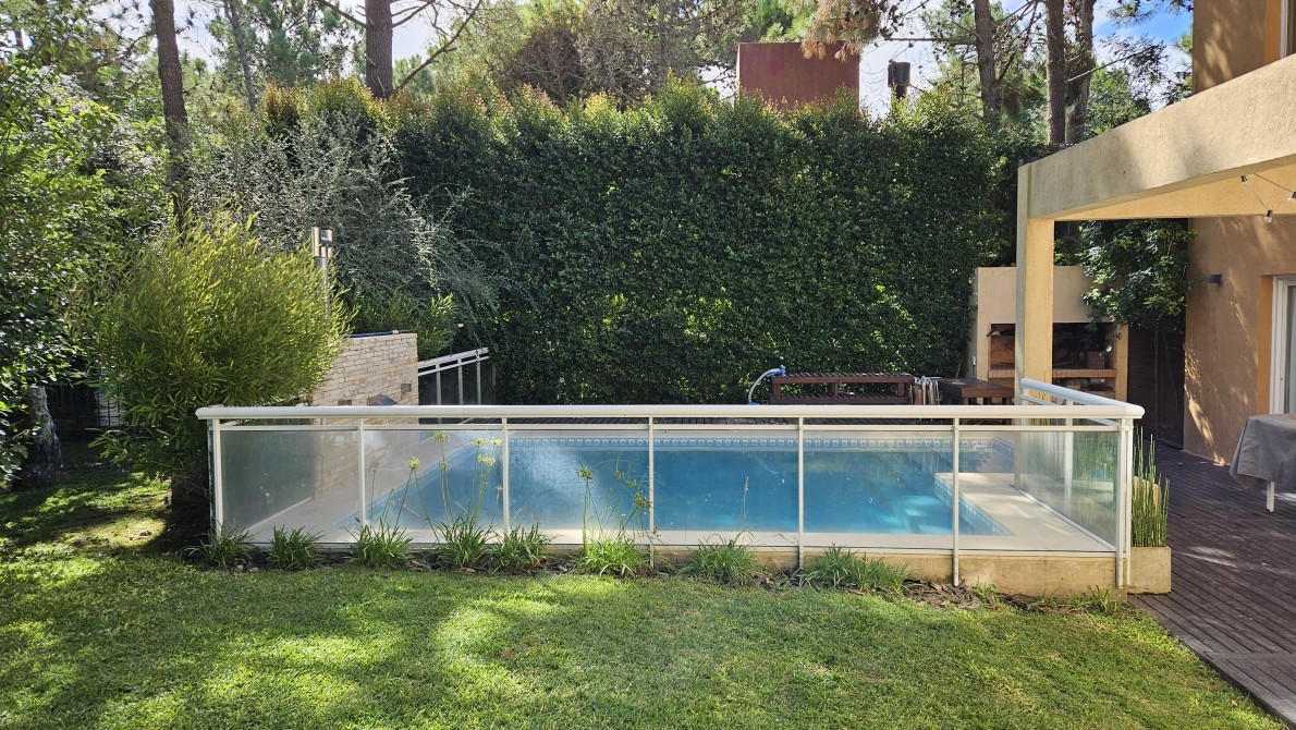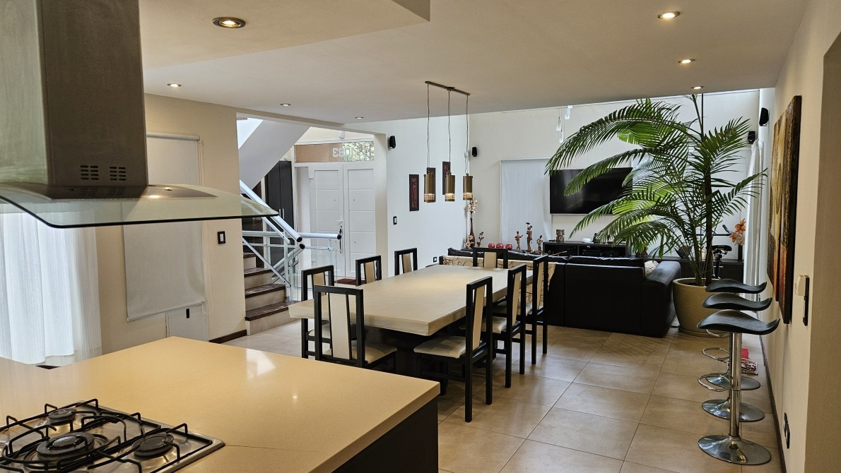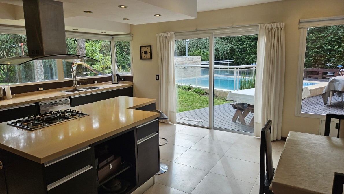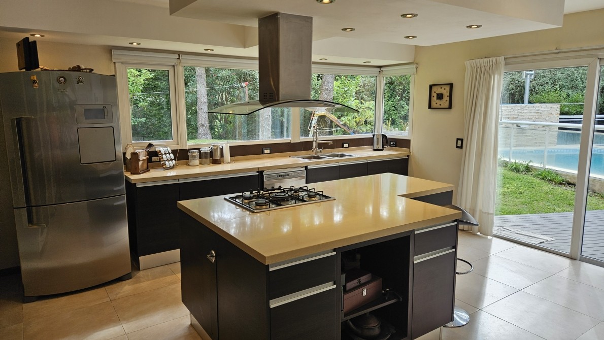 Excelente propiedad, ideal por sus comodidades, las escaleras son todas con barandas de aluminio con vidrio) Posee una muy moderna cocina c/ un ventanal con vista a la laguna artificial de la reserva, en la misma hay una isla con su campana respectiva, donde se encuentra el anafe con una hornalla central para cocinar con la paellera o el Wock, posee un módulo que es Heladera y otro modulo igual que es todo frezzer, y muy bien equipada la cocina, en el lavadero pose varios módulos incluida tabla de planchar, con lavarropa automático, también posee un horno Pizzero de fundición, y parrilla interna a Gas también posee un módulo de Bífera,