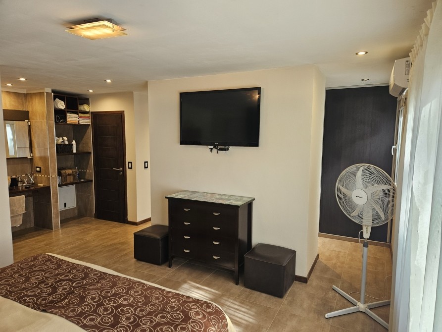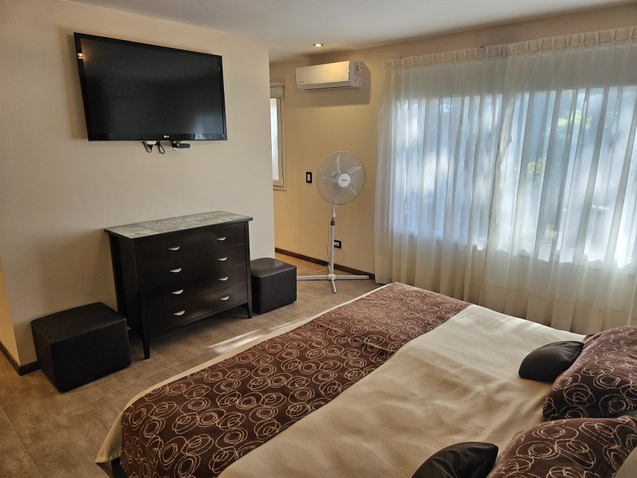 En el living hay sillones de cuero modernos con un LCD 65”, a continuación sigue con un amplio comedor con una mesa de 2,40 X 1.20mts y en la misma planta el dormitorio principal con un LCD 42” con DIRECTV, y un sommiers de 2,00Mts X 1,90Mts KING con Pilout , y el baño suite completo con bañera, en el ingreso se encuentra el Estudio con su respectivo toilette , allí se encuentra el escritorio con un sillón ejecutivo y el MODEM ( con servicio de WIFI). En la planta alta se encuentra los otros 2 dormitorios con sommiers con otro LED 40",y un baño completo con bañera y ante baño, muy MODERNOS los 4 baños (ver fotos),la iluminación exterior programada, la parrilla interna y en el gran parque se encuentra el deck con mesas y sillas con sobrillas de Parque con 2 reposeras en madera, el mismo posee servicio de mantenimiento, con riego computarizado. Su cochera es cubierta cerrada con portón automatizado con control remoto, con espacio para 2 vehículos, moto de agua y cuatriciclo, donde se encuentra otra toilette más. La propiedad posee servicio de ALARMA MONITORIADA. Cada dormitorio posee un AIRE ACONDICIONADO y en el Living uno Aire Acondicionado de 6500 Frigorías Frio/Calor. Y también posee LOZA RADIANTE EN TODA LA PROPIEDAD. Cualquier novedad comunícate con nuestra oficina, a la brevedad, Fernando E. Farulli Corredor y Martillero Público Av. Espora 2569 – Valeria del Mar TEL/Fax: (02254) – 40-3998 /(+54) 9 11-5120- 3396 farullipropiedades@gmail.com