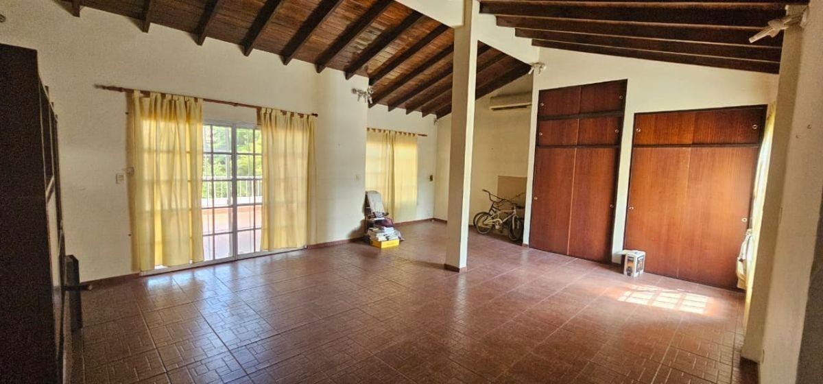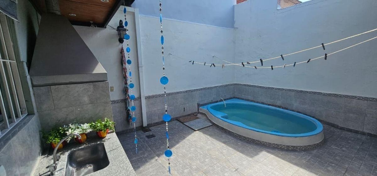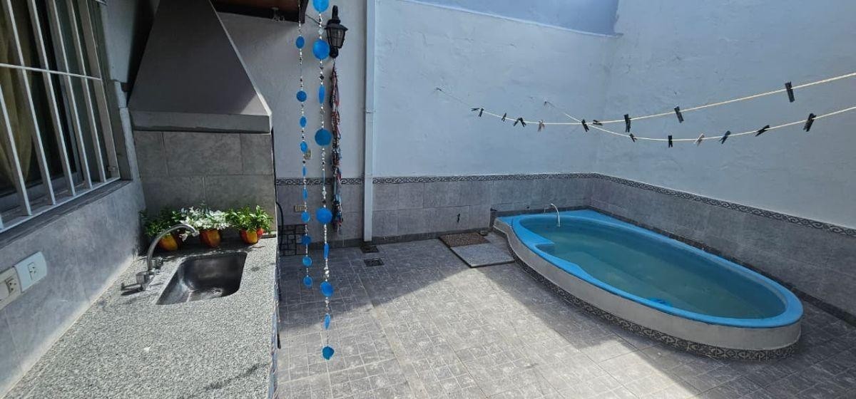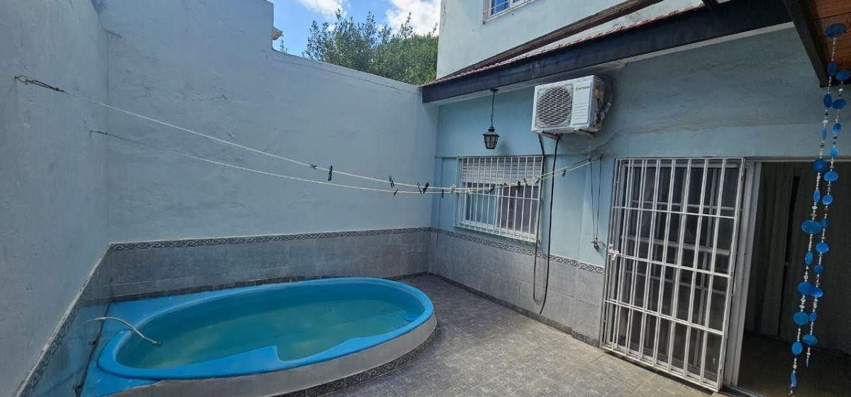 JARDÍN DE 8,66 M X 10,70 M CON ENTRADA DE AUTOS CON PORTON DE REJAS AUTOMÁTICO; LIVING DE ENTRADA DE 4,20 M X 4,60 M CON PUERTA BLINDADA Y AIRE ACONDICIONADO FRIO/CALOR, INTEGRADO A COCINA-COMEDOR AMPLIA DE 4,20 M X 3 M CON BAJO Y SOBRE MESADA Y ESPACIO PARA LAVAVAJILLAS O LAVARROPAS; 3 DORMITORIOS PEQUEÑOS (UNO DE 2,80 M X 3 M CON PLACARES EN 2 PAREDES; OTRO DE 3 X 2,40 M TAMBIÉN CON PLACARD; Y EL 3RO DE 2,80 M X 2,20 M CON PLACARD) UNO DE ELLOS HOY UTILIZADO COMO VESTIDOR, OTRO COMO ESCRITORIO, Y 2 DE ELLOS SON UNIFICABLES YA QUE LOS DIVIDE UNA PARED DE DURLOCK; BAÑO COMPLETO CON RECEPTÁCULO; DISTRIBUIDOR A LAVADERO DE 2 M X 1,70 M CON CONEXIÓN DE LAVARROPAS, SECARROPAS Y COCINA A GAS; DORMITORIO PRINCIPAL DE 3,30 M X 2,70 M CON PLACARD Y AIRE ACONDICIONADO; PATIO DE 4,20 M X 5,50 M CON PARRILLA, MESADA CON BACHA, CONEXIÓN PARA LAVARROPAS, PISCINA DE FIBRA CON FORMA DE RIÑÓN Y PASILLO LATERAL DIRECTO DESDE EL JARDÍN DEL FRENTE; EN EL DISTRIBUIDOR SE ENCUENTRA UNA ESCALERA DE MATERIAL A LA PLANTA ALTA: AMBIENTE MUY AMPLIO TIPO QUINCHO U OTROS FINES DE 7,30 M X 6,20 M CON PLACARD, AIRE ACONDICIONADO Y SALIDA A BALCÓN TERRAZA AL FRENTE DE 8,66 M X 3,60 M CON PARRILLA; DISTRIBUIDOR EN DESNIVEL CON BAÑO COMPLETO CON DUCHA, Y AMBIENTE TIPO 2DA COCINA CON MESADA CON BACHA, CONEXIONES PARA COCINA, LAVARROPAS Y LAVAVAJILLAS, Y TERMOTANQUE.