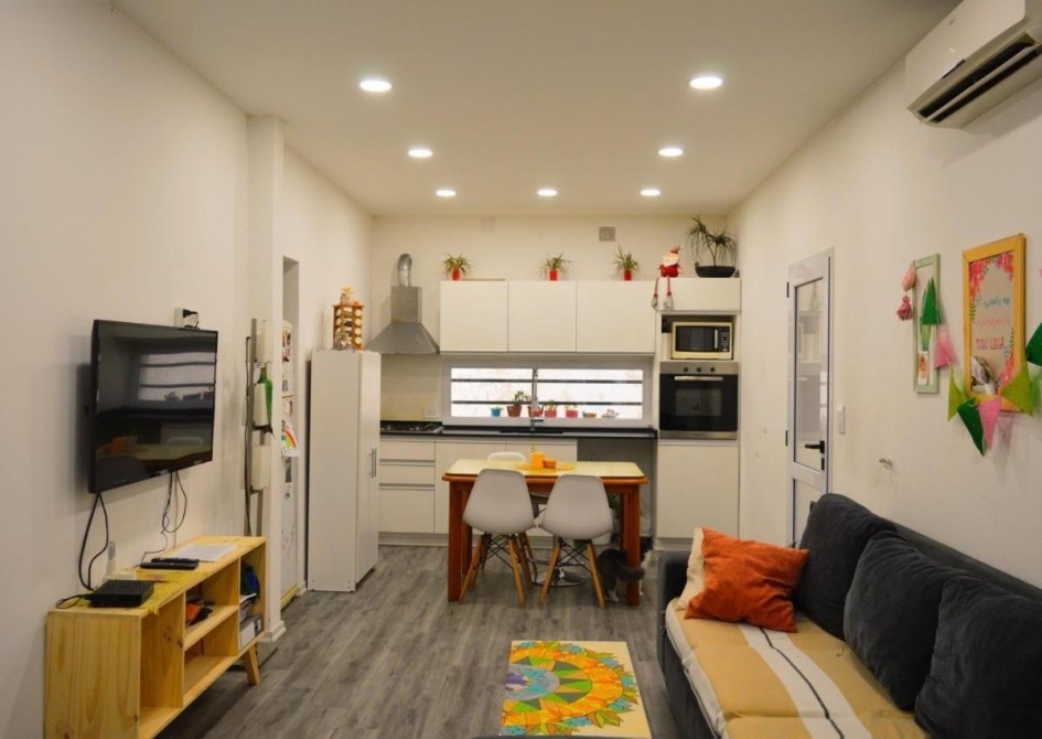 LÍVING COCINA COMEDOR TODO INTEGRADO DE 2.90 x 7.80m. c/BAJO Y SOBRE MESADA Y CONEXIÓN PARA LAVARROPAS;