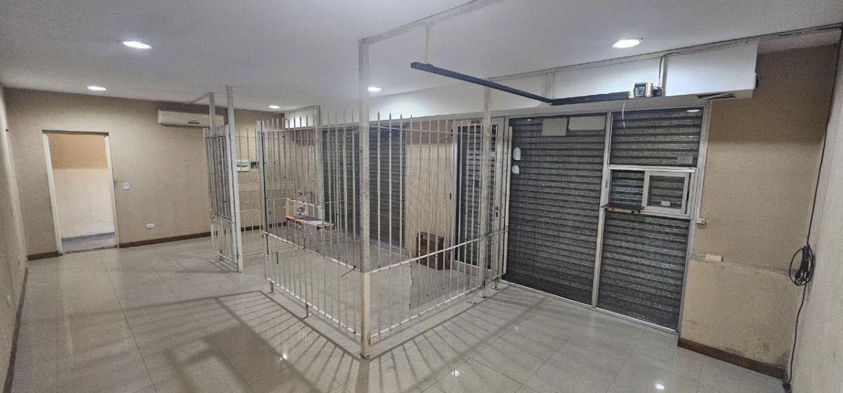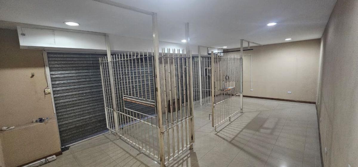 Local de 8,50 m x 4,70 m con baño, doble vidriera y rejas para atención al público.