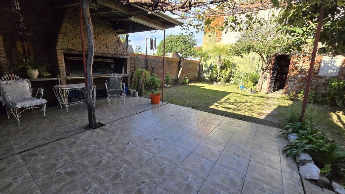 Fondo libre de 8,66 m x 14m con quincho abierto con parrilla y horno a gas;