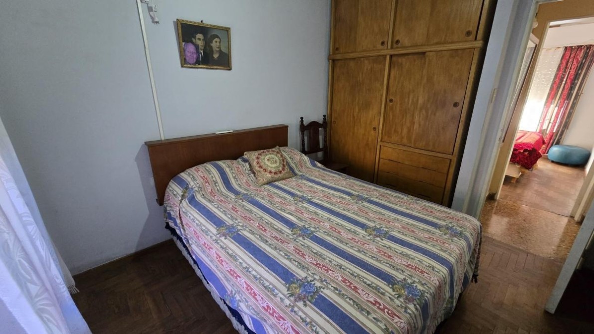 Dormitorio de 2,70 m x 2,90 m con pisos de parquet y placard;