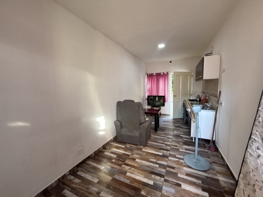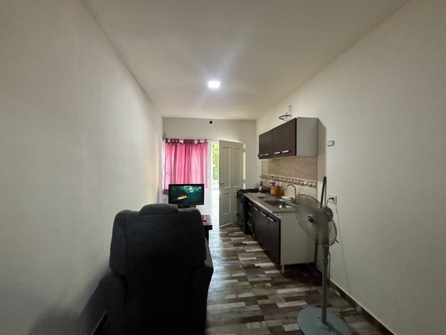 La unidad cuenta con ambiente principal con cocina integrada, equipada con muebles bajo mesada y alacena, baño completo y un pequeño patio que aporta ventilación y luz natural.