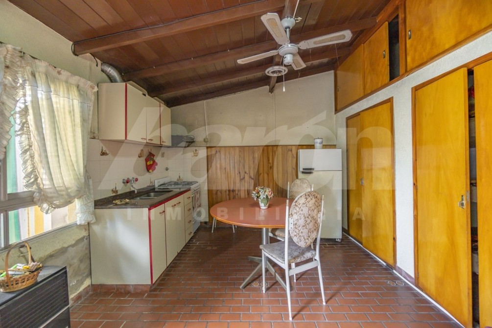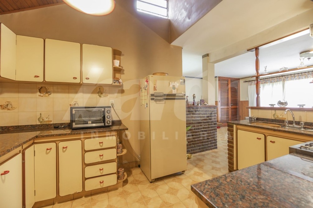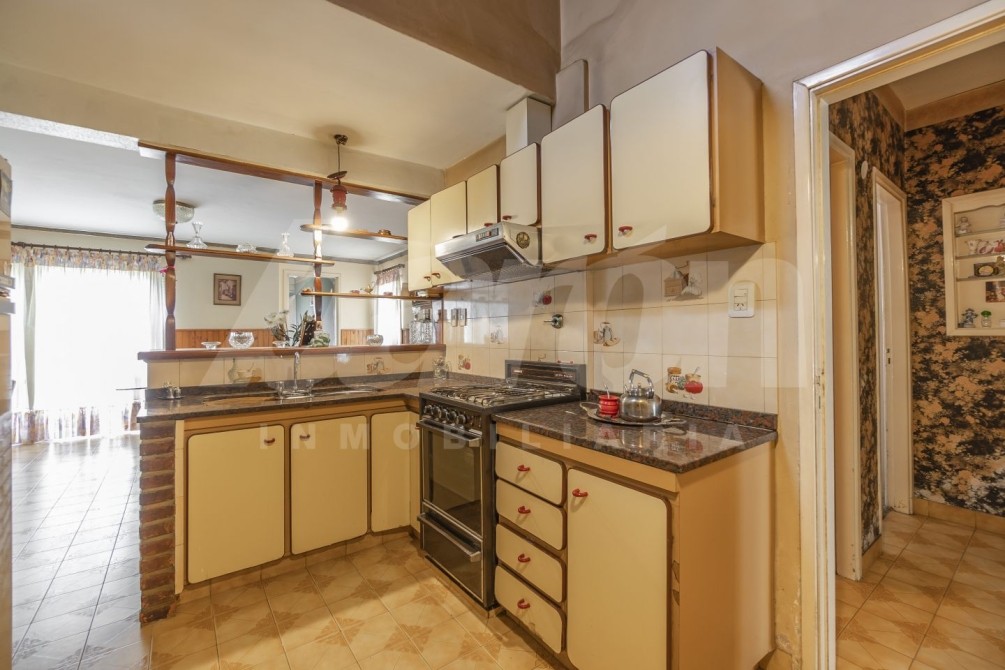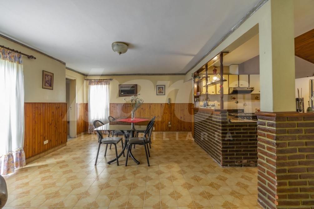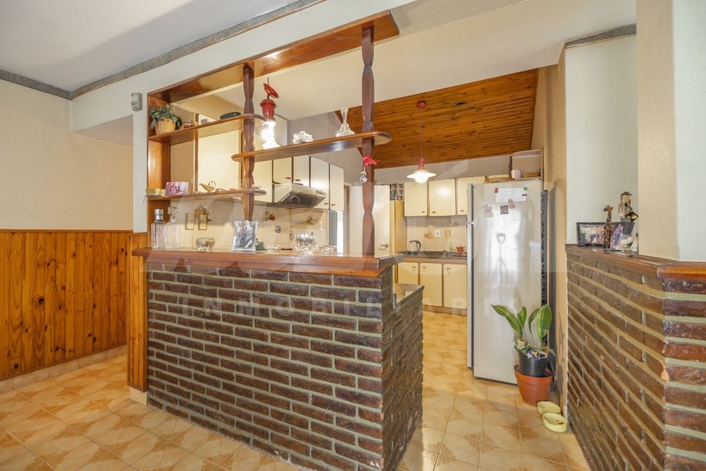 A continuación, la propiedad dispone de una cocina completa, equipada con muebles bajo mesada y alacenas, integrada a un comedor diario con salida al exterior. En este sector se encuentra un amplio parque con piscina de material y, al fondo, un quincho de generosas dimensiones, ideal para reuniones y encuentros sociales. El quincho posee cocina con muebles bajo y sobre mesada, armario de gran tamaño para guardado, espacio para mesa, parrilla, ventilador de techo y toilette.