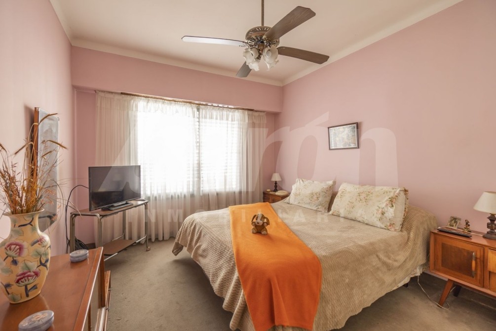 Al final del pasillo se encuentra una escalera caracol que conduce a la planta alta, donde se desarrollan dos dormitorios más, uno de ellos con salida a terraza, además de un baño completo. En la terraza se encuentra instalado el termotanque.