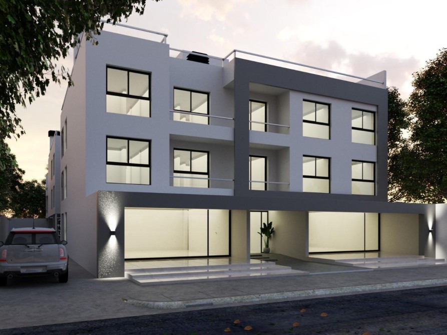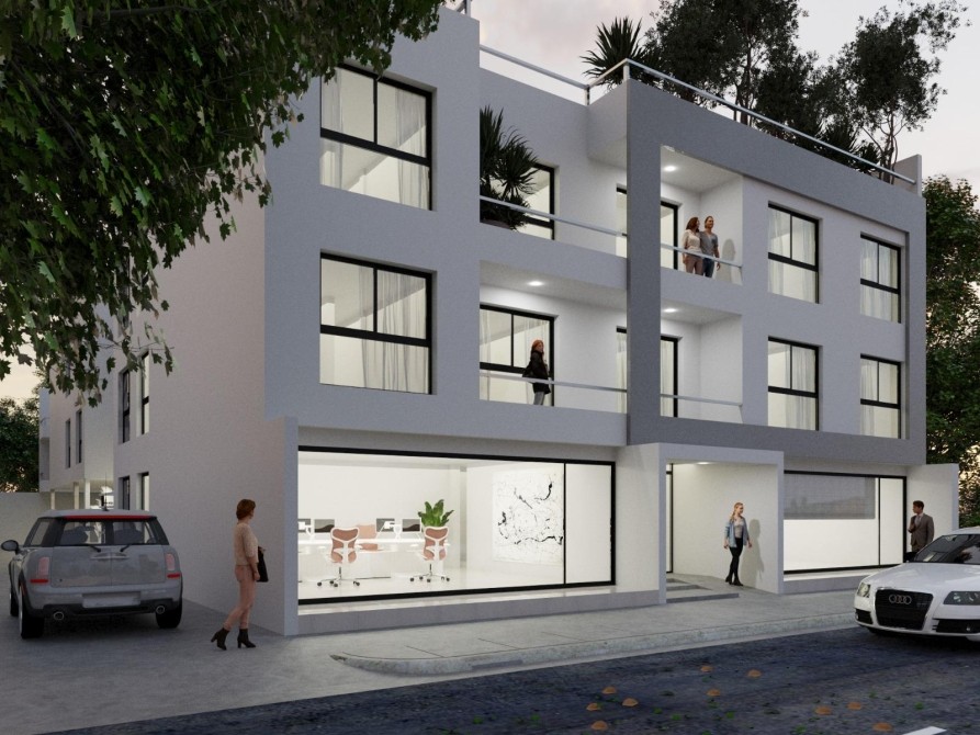 Edificio, con disposición de planta baja y 2 pisos, locales comerciales y cocheras.