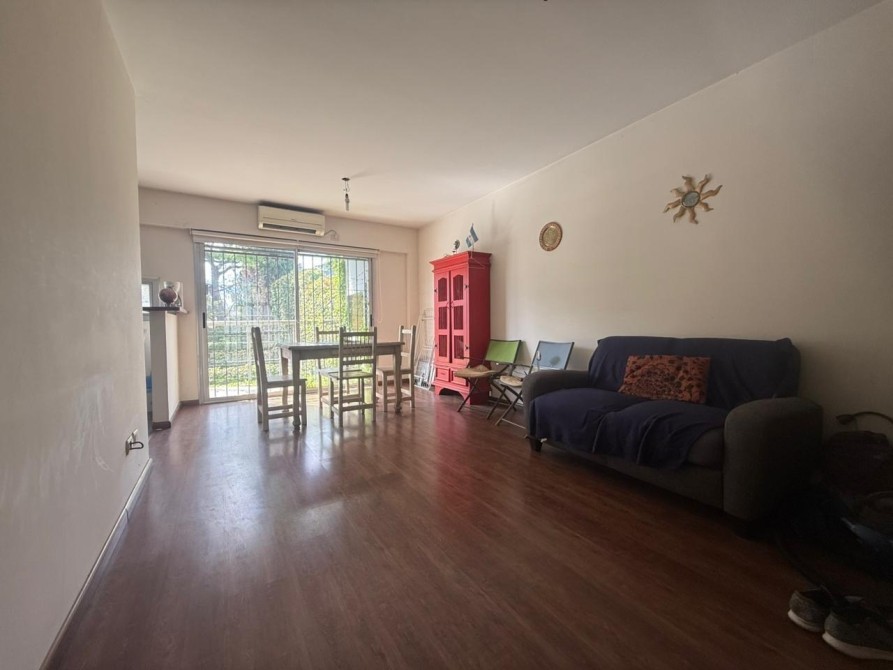 La propiedad cuenta con un amplio living comedor con cocina integrada, generando un espacio moderno, funcional y muy luminoso, con salida directa al balcón ( con pequeña parrilla ).