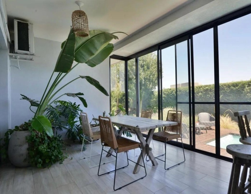 La propiedad también cuenta con un lavadero externo, cochera cubierta con pérgola, calefacción por piso radiante, aire acondicionado, y aberturas de aluminio con vidrio doble y mosquitero. Los pisos de porcellanato añaden un toque de elegancia y durabilidad.