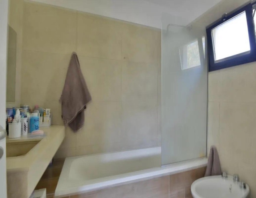 El área exterior no se queda atrás, con un jardín parquizado que incluye riego automático y un cerco perimetral que garantiza la privacidad. La pileta, con filtro automático y playa húmeda, está cercada para seguridad. Para disfrutar del aire libre, la galería cubierta con cerramiento incluye una parrilla con bacha, perfecta para reuniones sociales.