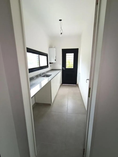 La construcción es tradicional, con base de platea y techo de losa, asegurando durabilidad y calidad. La casa cuenta con losa radiante y caldera dual para una calefacción eficiente. Las aberturas de DVH con mosquiteros garantizan confort térmico y acústico. El interior se reviste completamente en porcelanato, y la carpintería, tanto en muebles como en placares, es a medida, ofreciendo un acabado de alta gama.