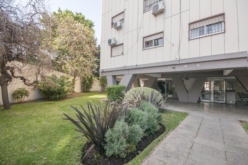 EDIFICIO solido y muy bien mantenido, en predio con JARDINES y rejas.