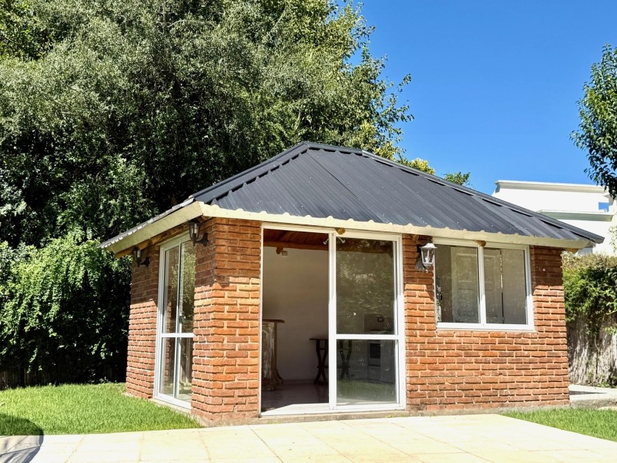 En la parte exterior tenemos una galería semicubierta, un amplio quincho cerrado con cocina y barra. Parrilla en el exterior.