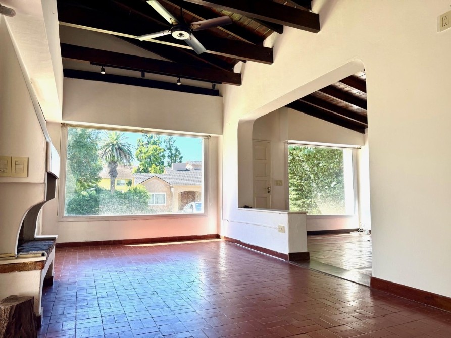 La propiedad se desarrolla en una planta. Del acceso principal se ingresa a un amplio living comedor con hogar a leña. Los techos de madera le otorgan distinción y calidez.