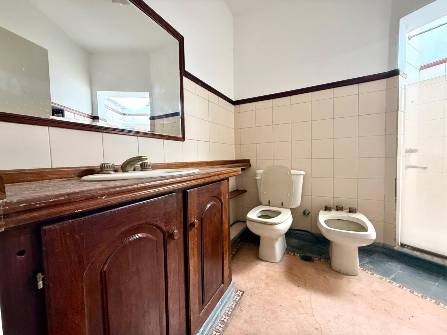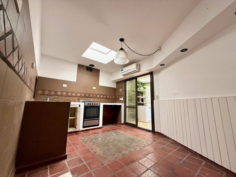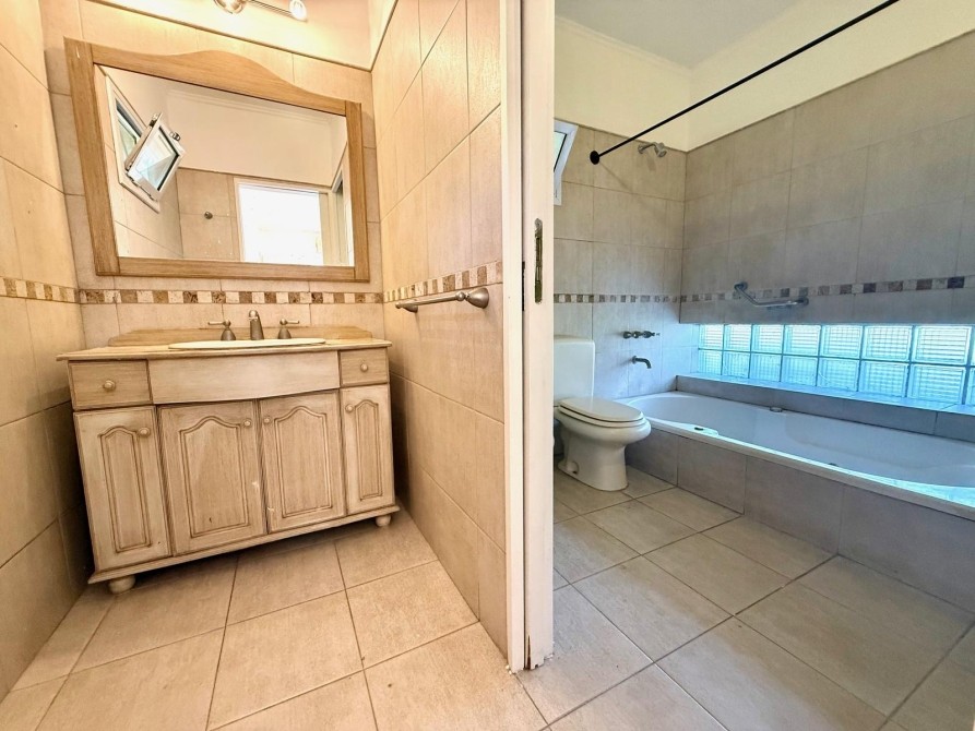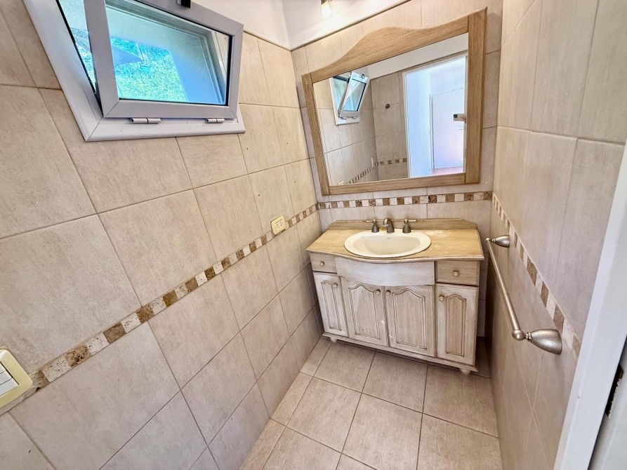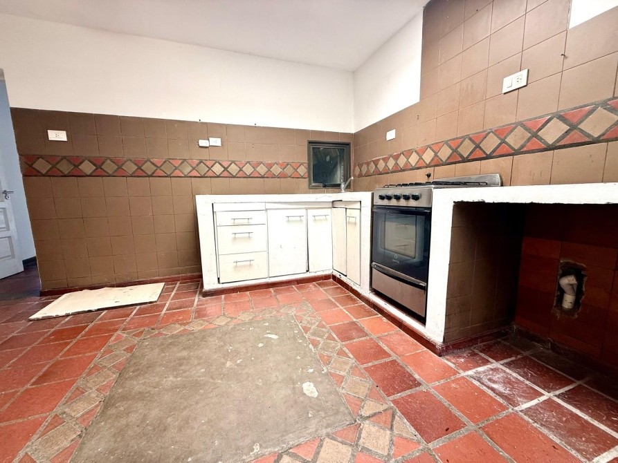 Cocina independiente, con bajo mesadas y de cómodas dimensiones. Salida a lavadero techado. Baño de servicio o de pileta.