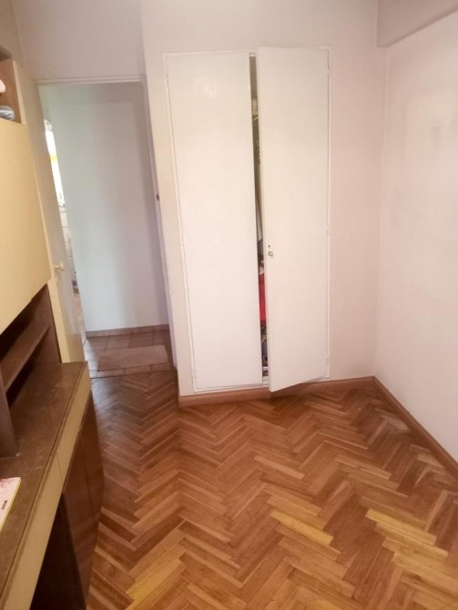Dormitorio con pisos de parquet y placard empotrado con ventana con vista al frente.
