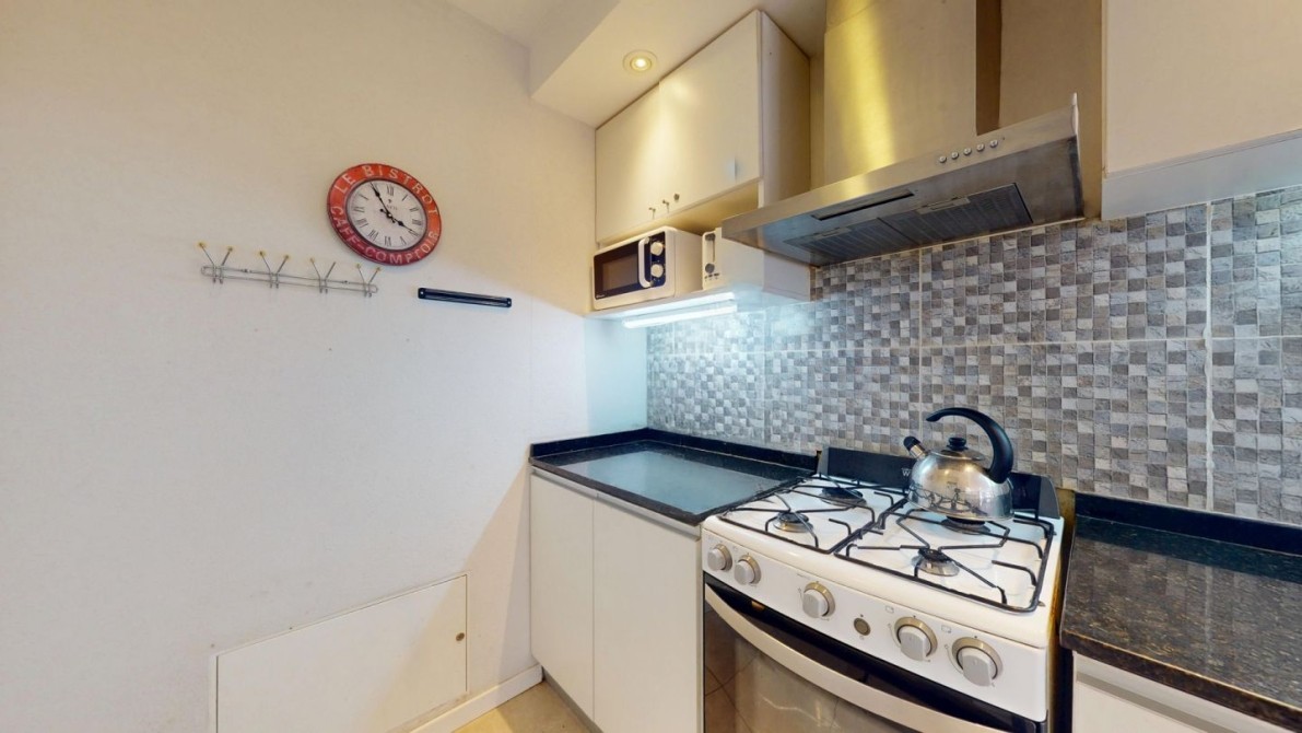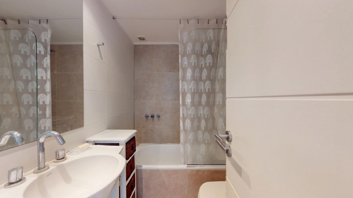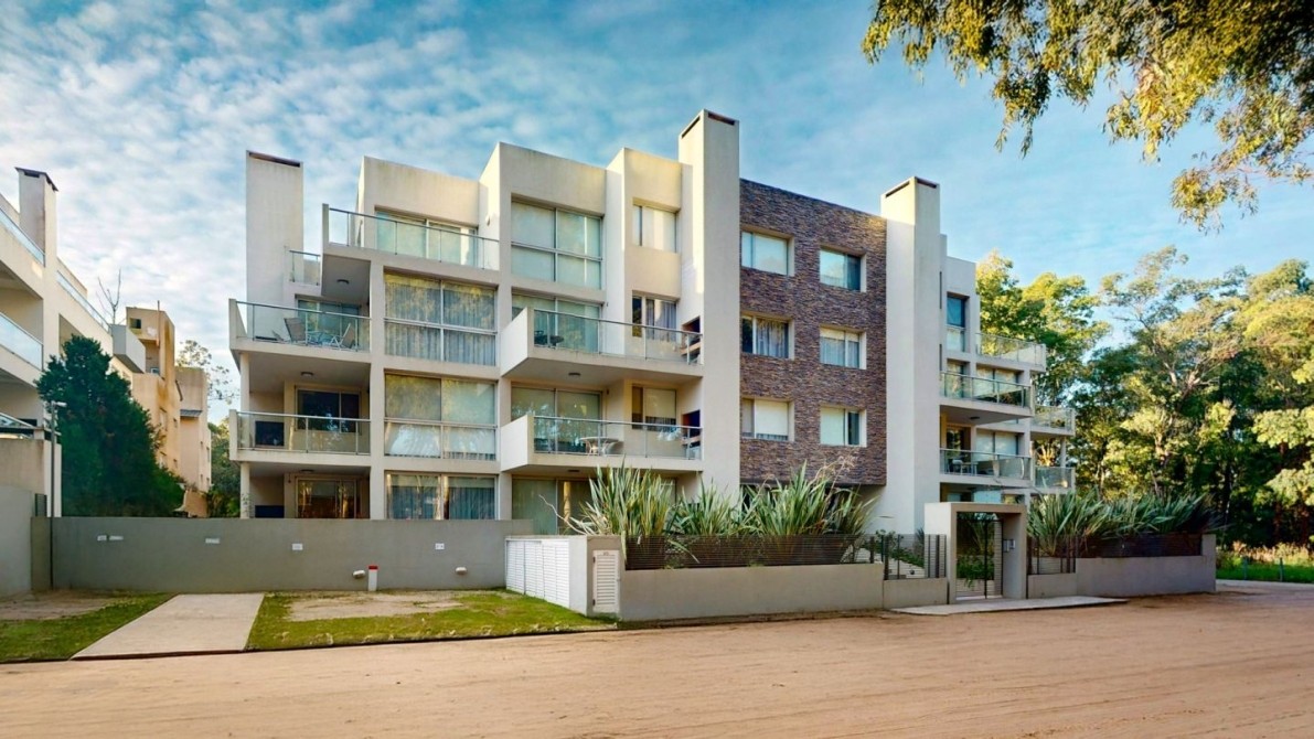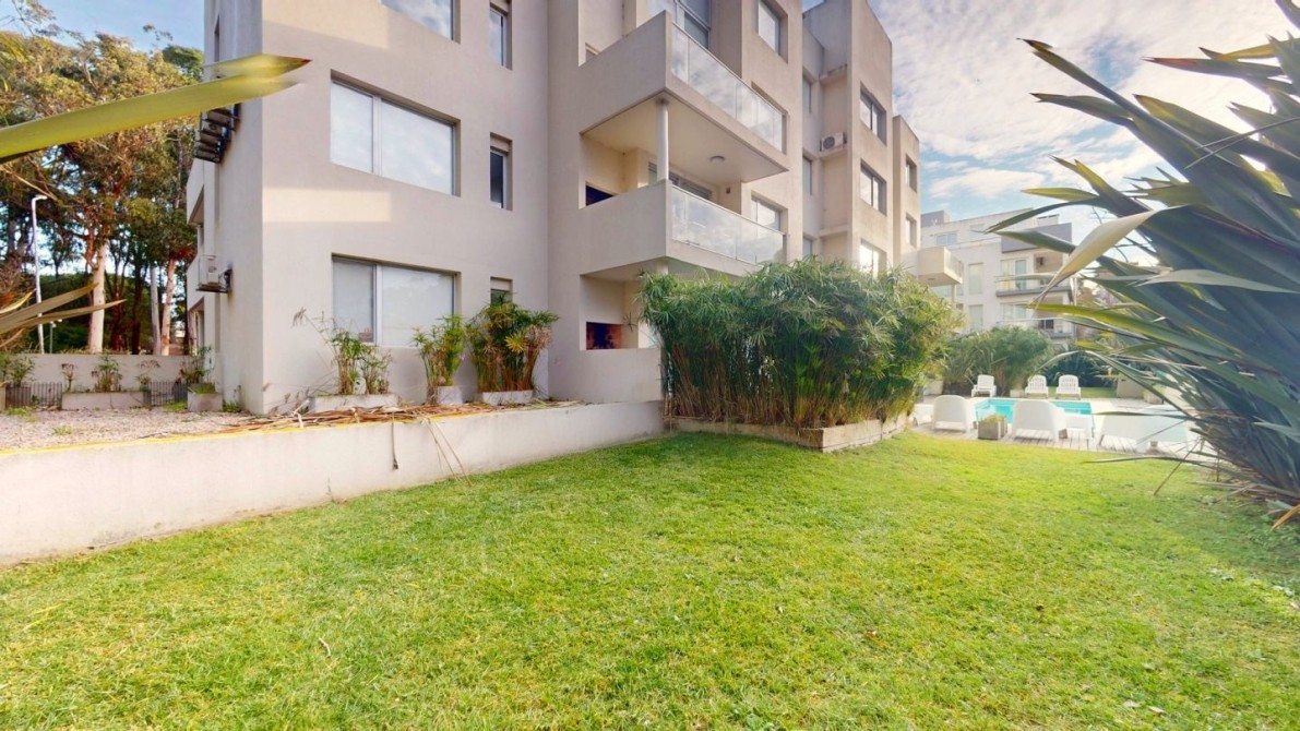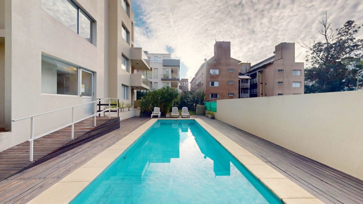 El complejo cuenta con piscina descubierta climatizada, solarium, espacios verdes de uso en comun y monitoreo con cámaras de vigilancia.