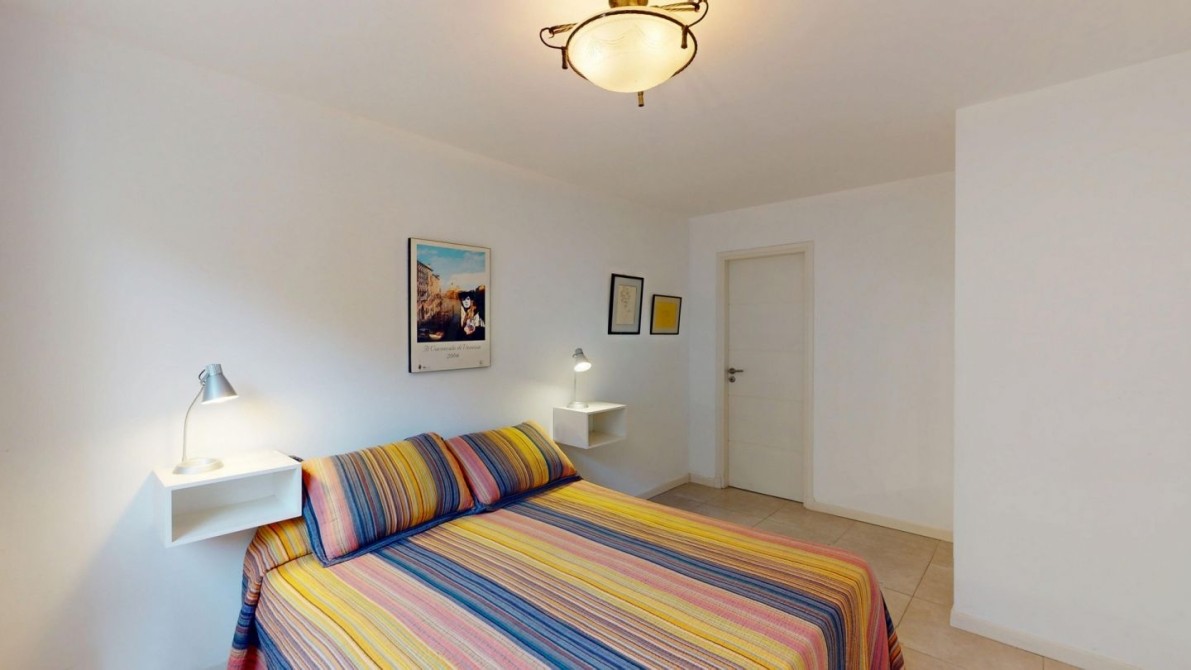 - Dormitorio principal con cama matrimonial en suite con aire acondicionado.