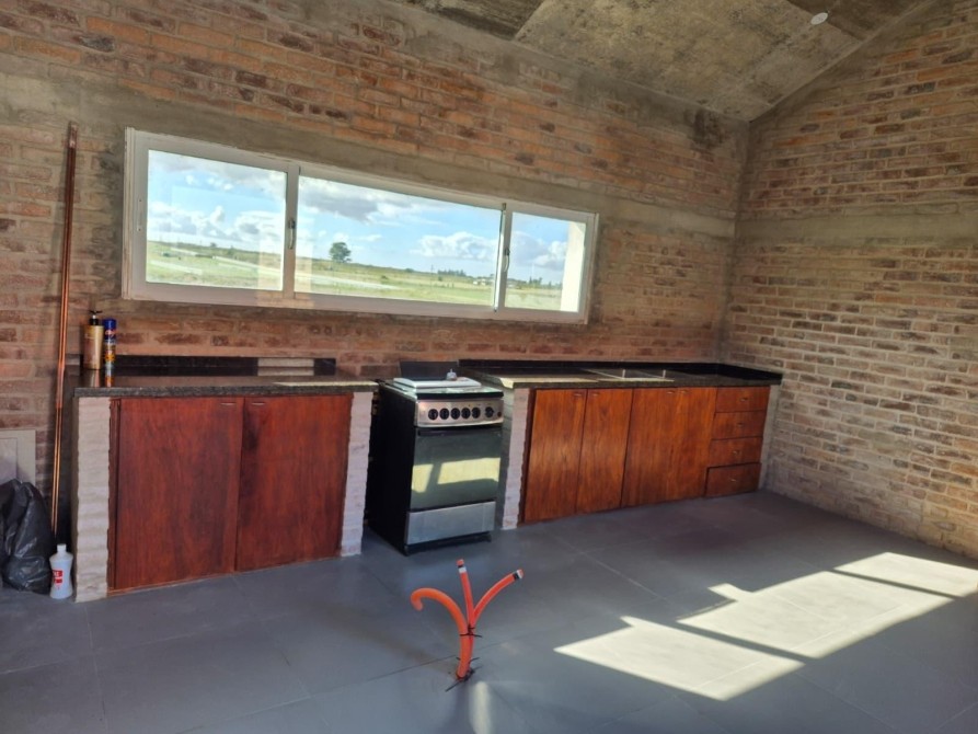 propiedad solida, toda en material y planchada. cuenta con 4 dormitorios, 2 baños, gran living comedor con estufa a leña y amplia cocina comedor con muebles y espacio para isla.