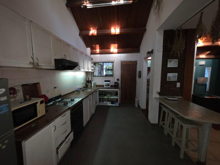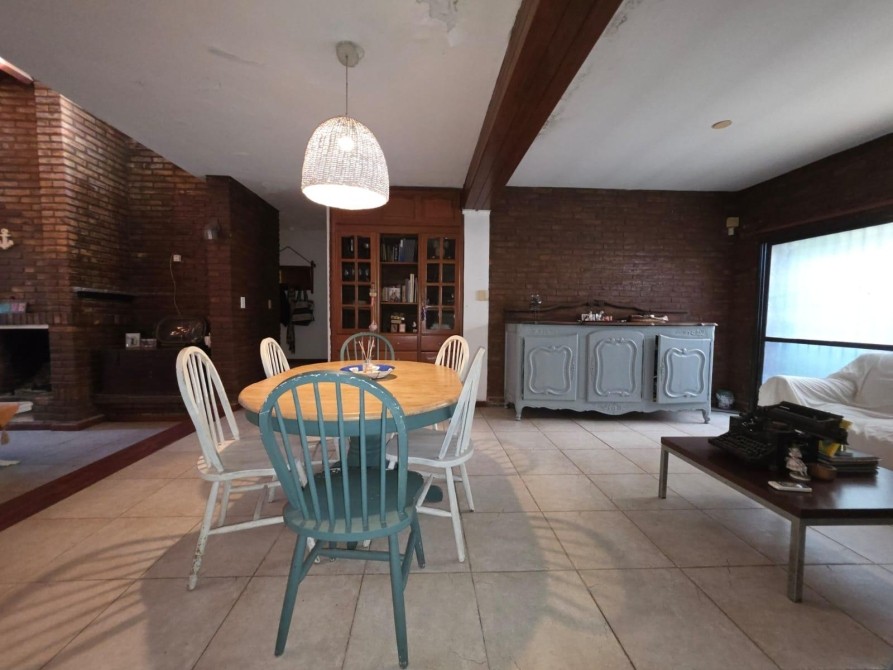 -Living comedor que cuenta con hogar a leña,  cocina integrada. Ambiente amplio y luminoso.