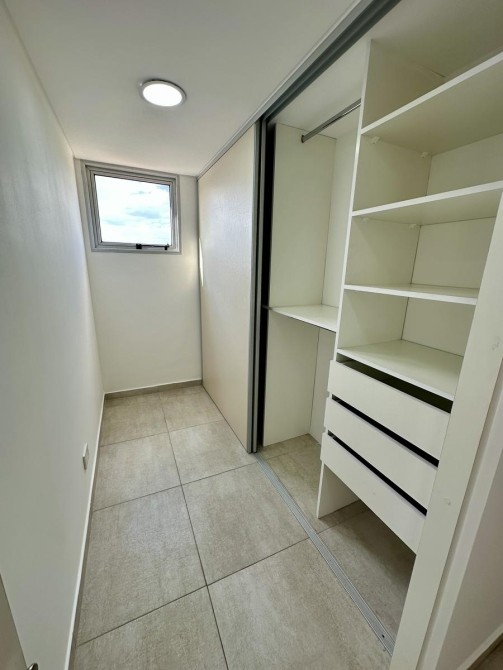 dormitorio principal con vestidor y balcon al frente.