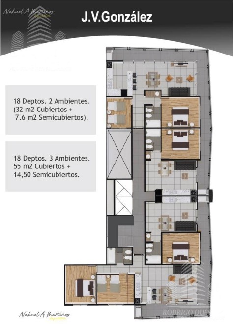 DEPARTAMENTOS DE 3 AMBIENTES: (55 m2 cubiertos + 14.50 m2 semicubiertos)