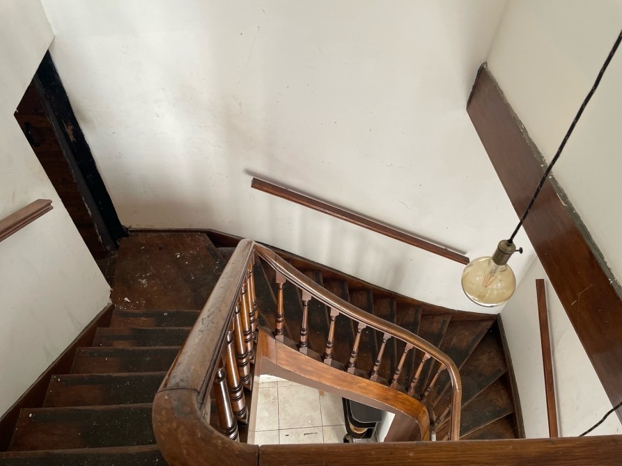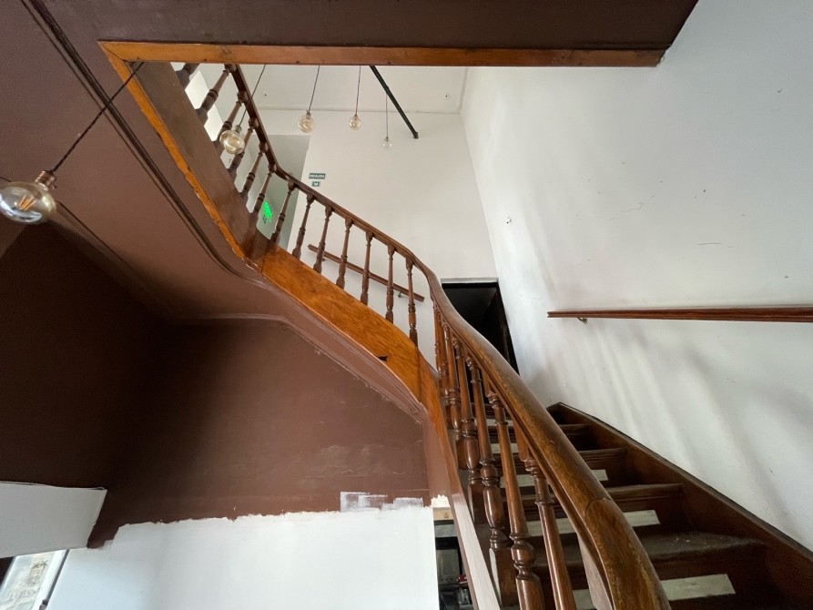 • Detalles de época: escalera de madera, balcón, ventanales altos, estructura sólida y elegante.