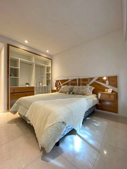 Dormitorio principal a la calle con pisos de porcelanato, placard a medida y baño en suite
