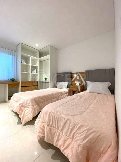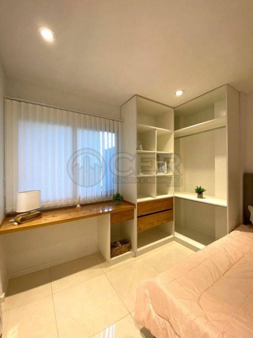 Segundo dormitorio a al contrafrente con pisos de porcelanato con espacio de escritorio