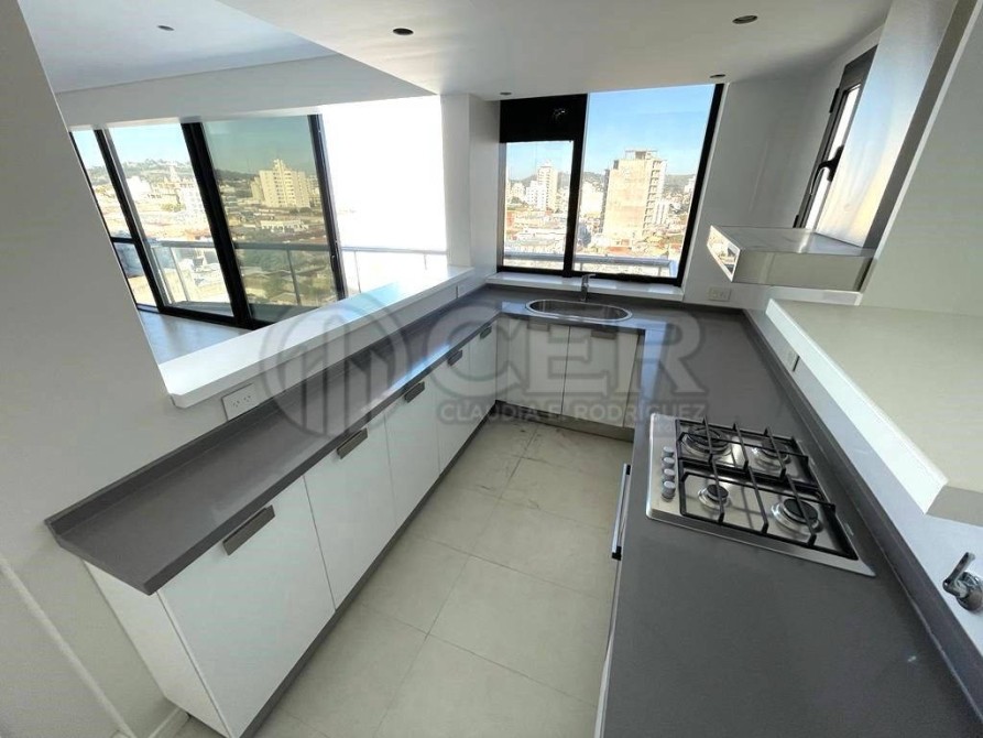 Departamento con estar-comedor y dos balcones (uno sobre Mitre y otro sobre Alem), cocina, toilette, lavadero cubierto, dormitorio principal con vestidor y baño completo, dos dormitorios en suit (cada uno con baño completo). Gran luminosidad y vista a las Sierras.