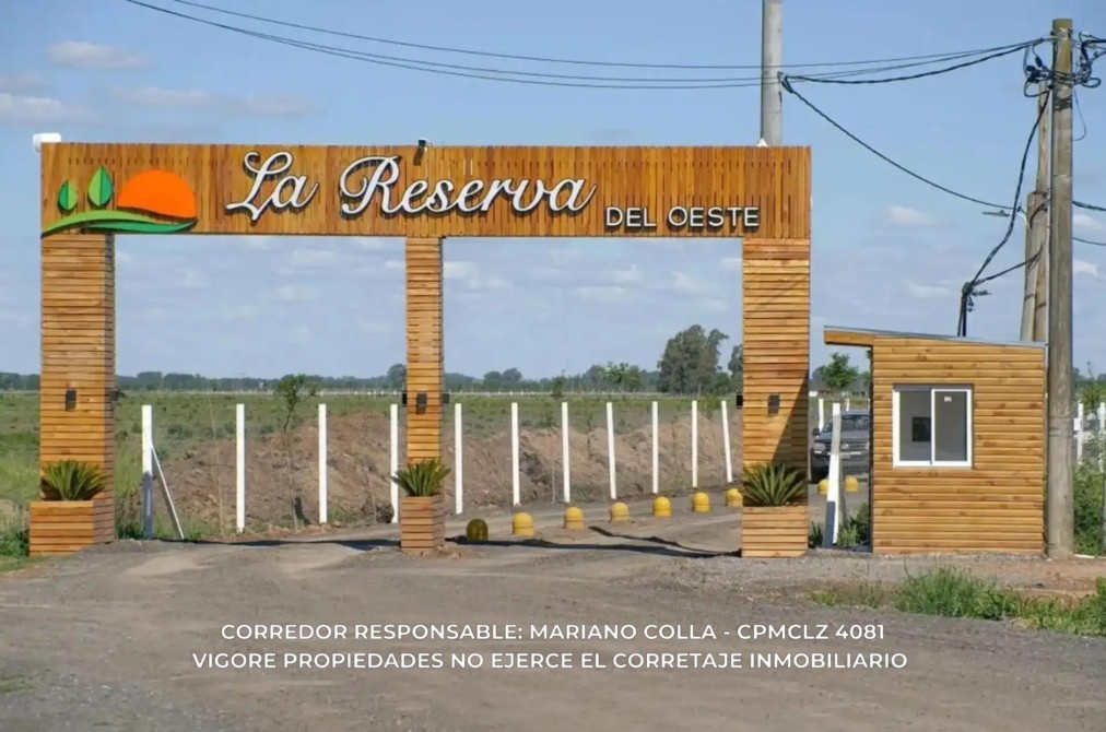 Se ofrece a la venta excelente lote ubicado en el barrio Reserva del Oeste, ideal para quienes buscan construir su vivienda o invertir con ventajas concretas desde el primer día.